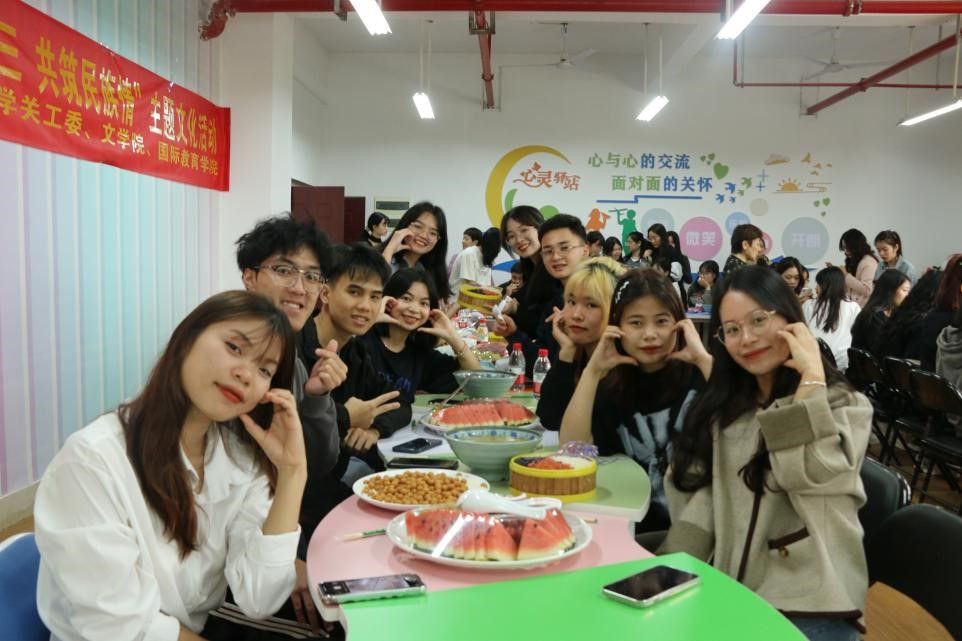 4月9日上午,由校关工委主办、文学院承办、国际教育学院协办的南宁师范大学中越师生“欢庆三月三,共筑民族情”主题文化活动在研究生综合楼202顺利开展。学校关工委常务副主任、原广西师范学院副院长王甲辉、离退休党委书记、关工委副主任周泉、文学院党委书记旷晓霞、国际教育学院党委书记黄菊、文学院院长石勇等领导班子,学校关工委老师及文学院学生代表、越南留学生出席了本次活动。