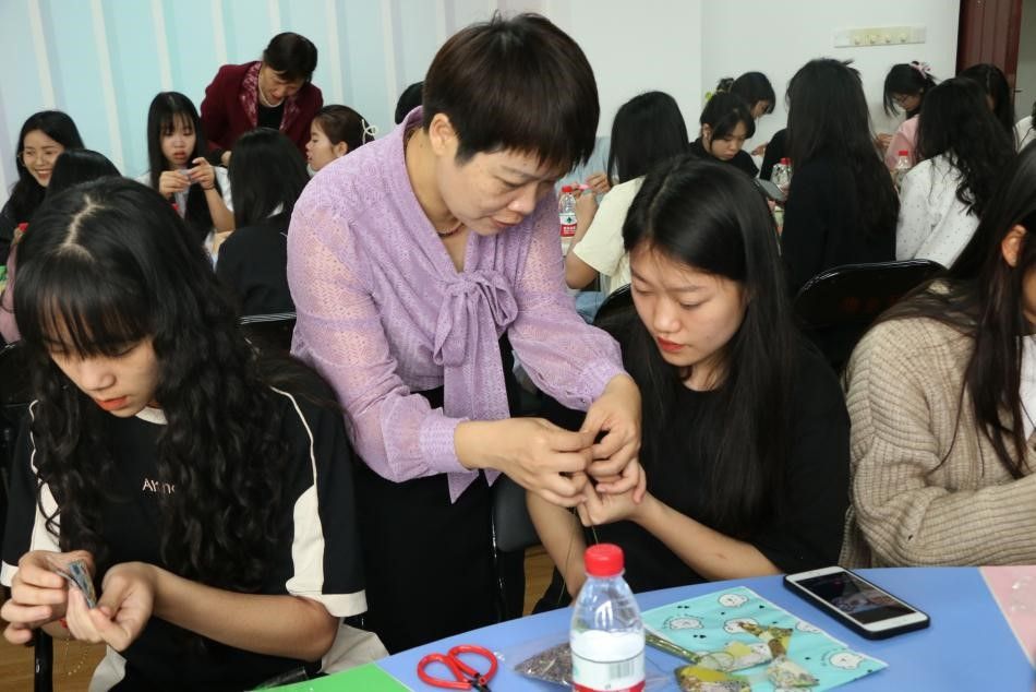 本次活动分为三部分内容——上一堂传统文化课、学一项民族手工、品一次广西美食。梁谷子老师绘声绘色地讲述了广西三月三的由来与“歌仙”刘三姐的故事,让大家对广西民俗文化有了更加清晰的了解。初等教育学院非遗手工课杨帆老师、关工委缪军老师、钟焱老师现场指导在场中越学生制作壮锦香囊,香囊作为中国传统文化的重要组成部分,代表着人们对美好生活的期许,同时也承载了南宁师范大学对越南留学生的殷切祝福。随后,主持人播放五色糯米饭和油茶制作视频,同学们直观地了解了广西特色美食的制作方法与背后的故事。此外,现场还准备了五色糯米饭、油茶、点心和时令水果,中越学生在享受美食的同时,切实地品味了中华传统文化的独特韵味。文学院院长石勇做活动总结。