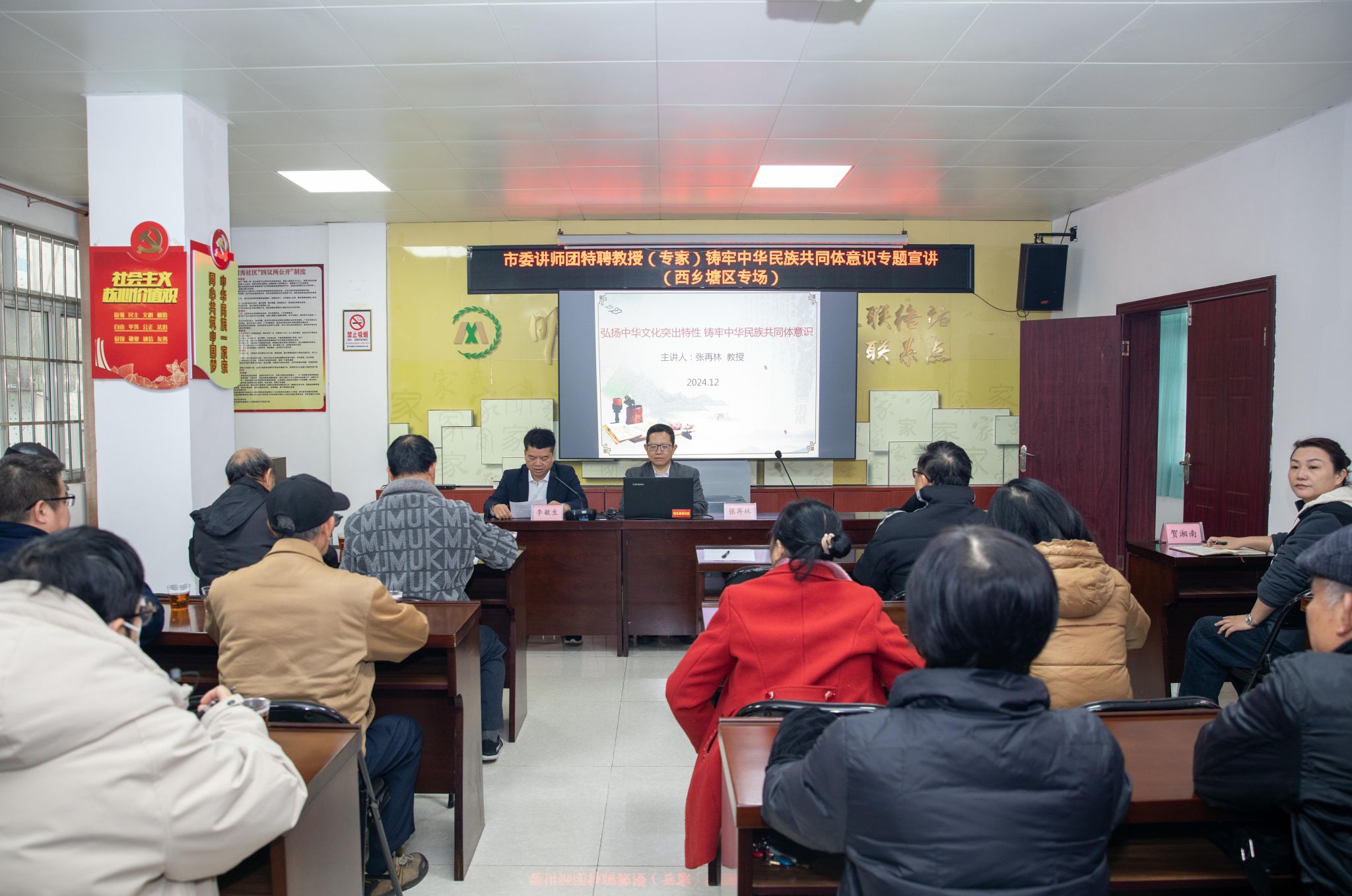 12月26日,南宁市委讲师团特聘教授(专家)到北湖街道明秀社区开展铸牢中华民族共同体意识专题宣讲活动,bw必威西汉姆联档案馆馆长、教授张再林同志受邀进行专题宣讲。