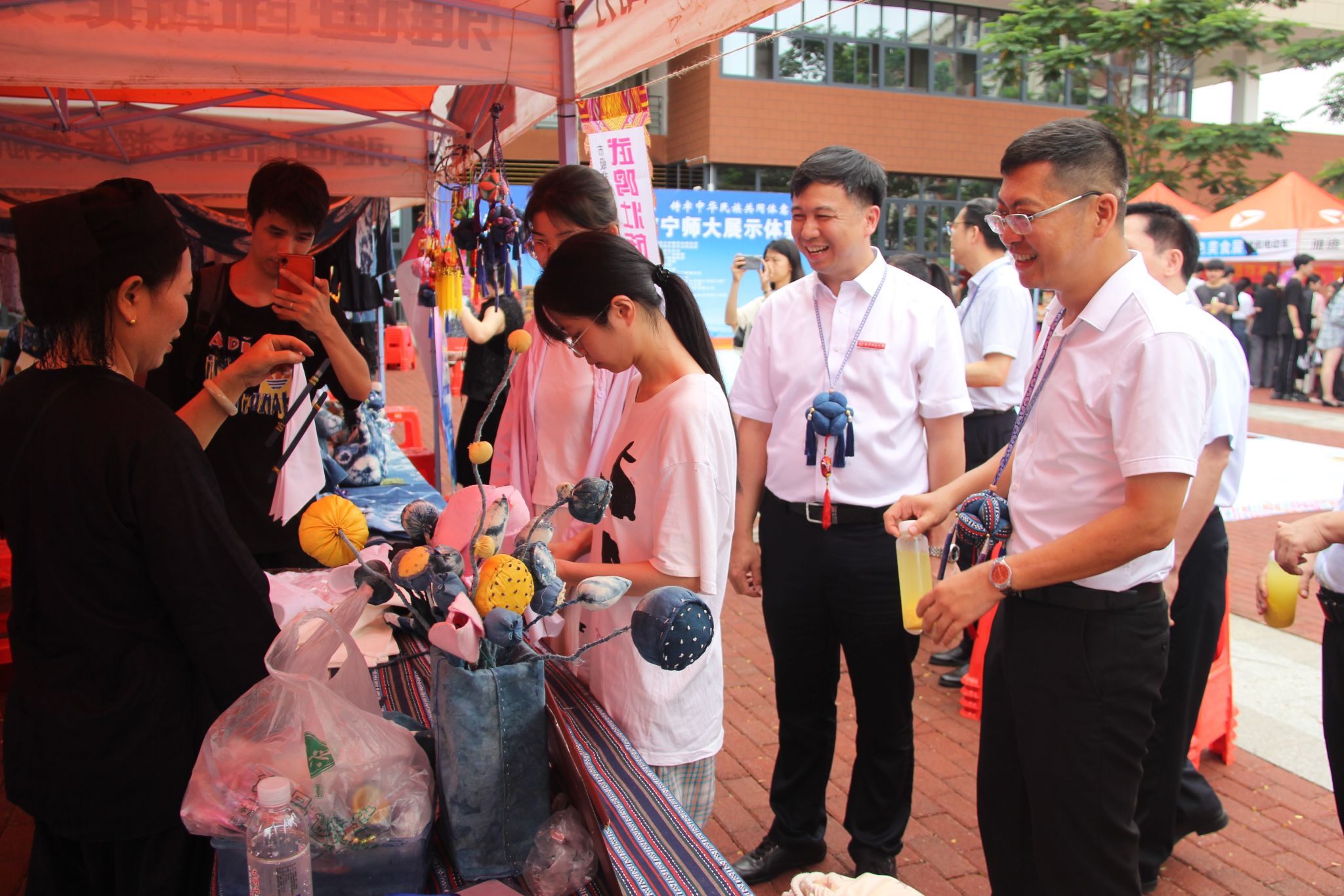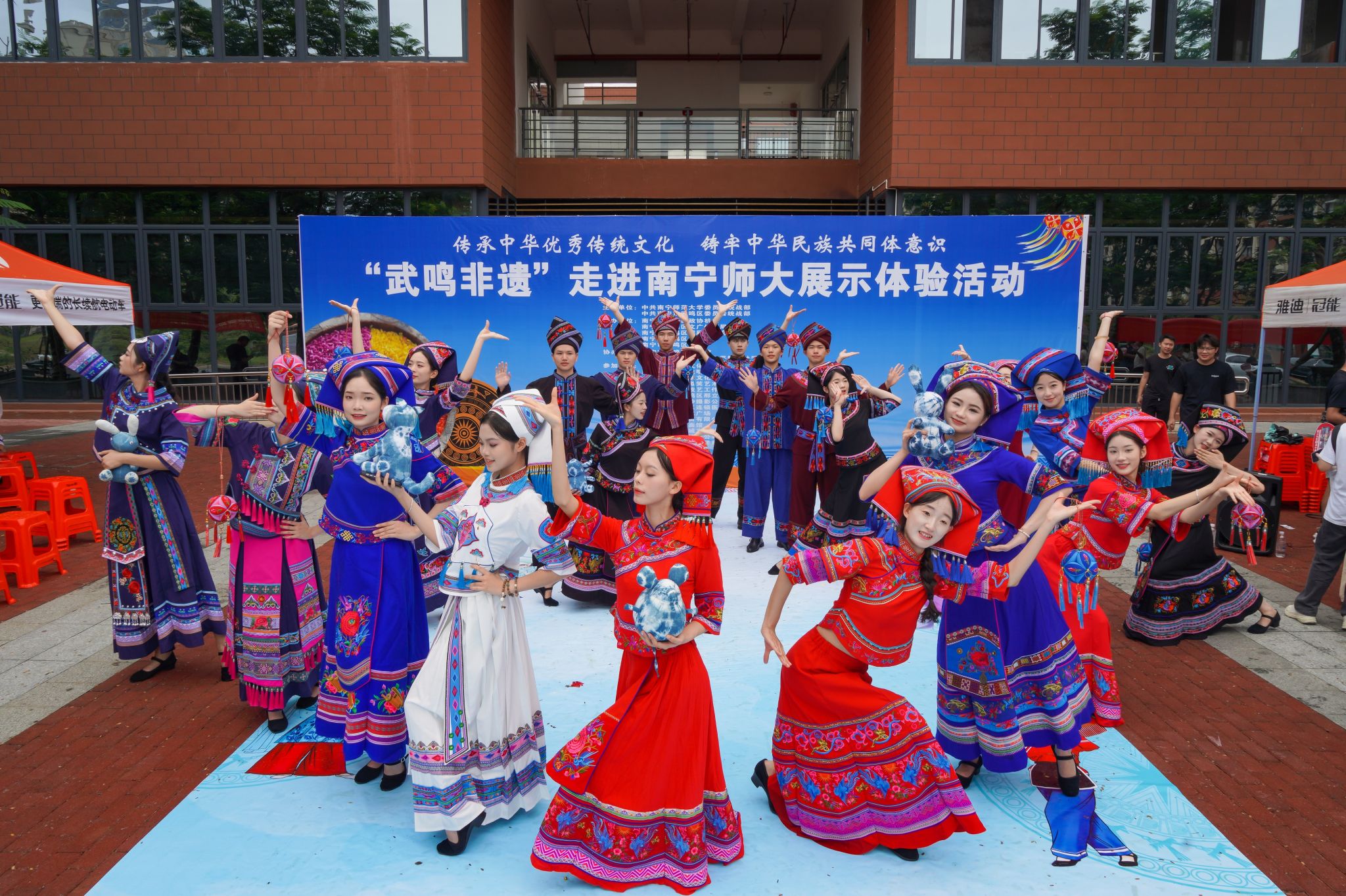 5月28日,学校党委统战部联合武鸣区党委统战部在bw必威西汉姆联武鸣校区大学生创业孵化园前开展了以“传承中华优秀传统文化 铸牢中华民族共同体意识”为主题的“非遗”展示体验活动。学校统一战线工作领导小组部分成员、学校师生代表,武鸣区党委常委、统战部部长、政府副区长黄任含和武鸣区党委统战部、政协机关、城厢镇、武鸣区文广体旅局、工商联、侨联等单位有关负责人参加了此次活动。