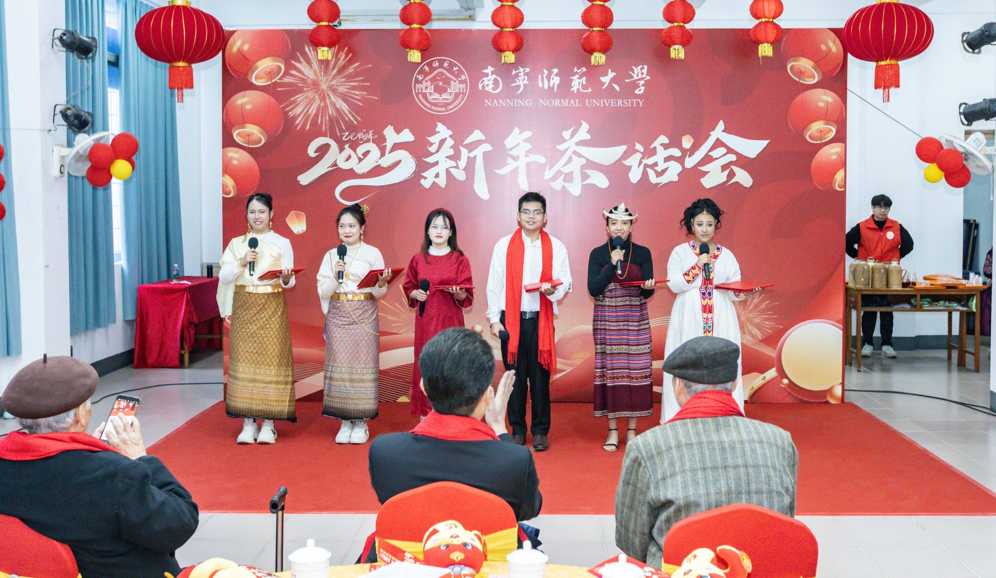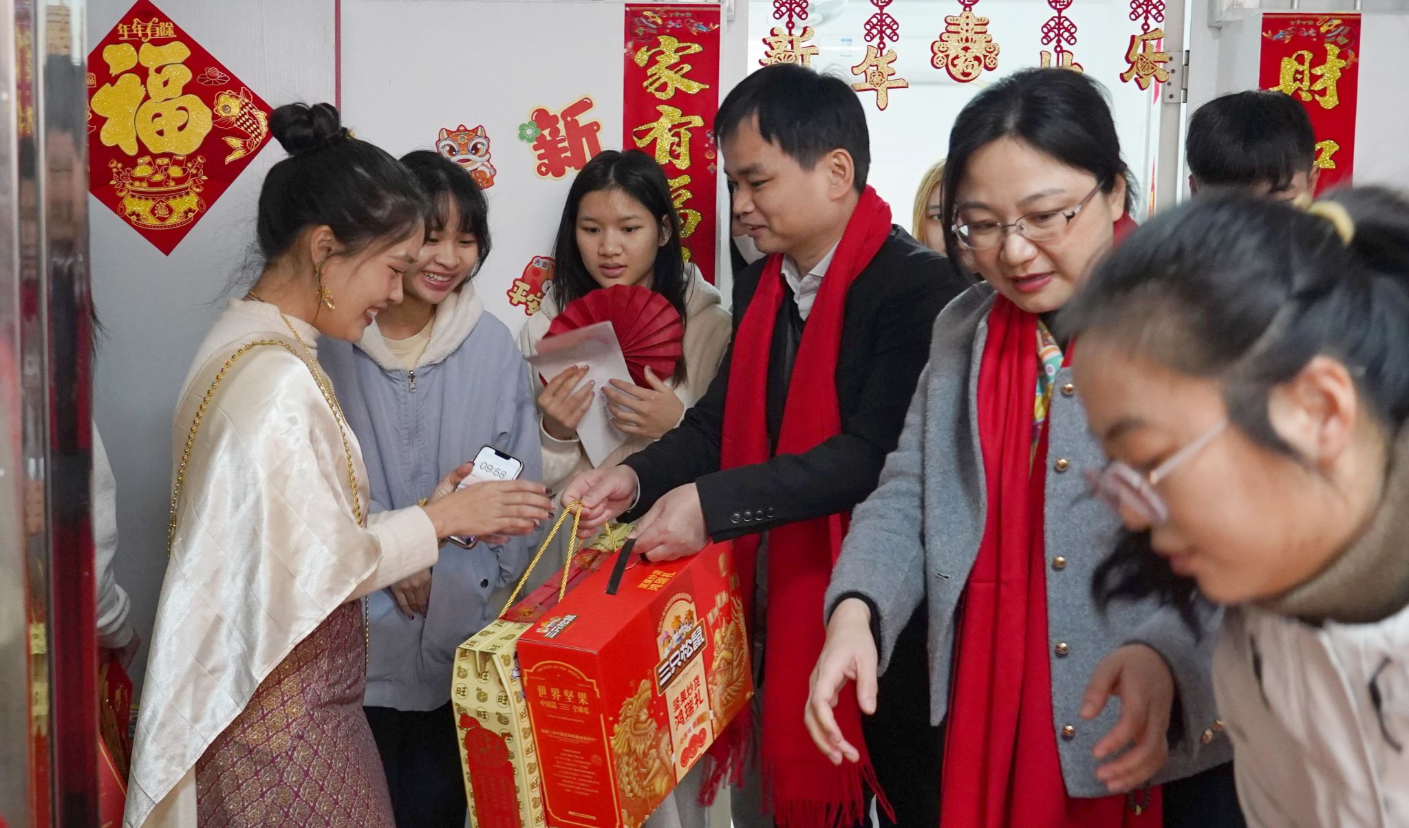 当天来自泰国、越南、东帝汶和埃塞俄比亚的6名国际学生代表还参加了学校举办的新年茶话会并现场表演了诗朗诵《丝路畅想》。